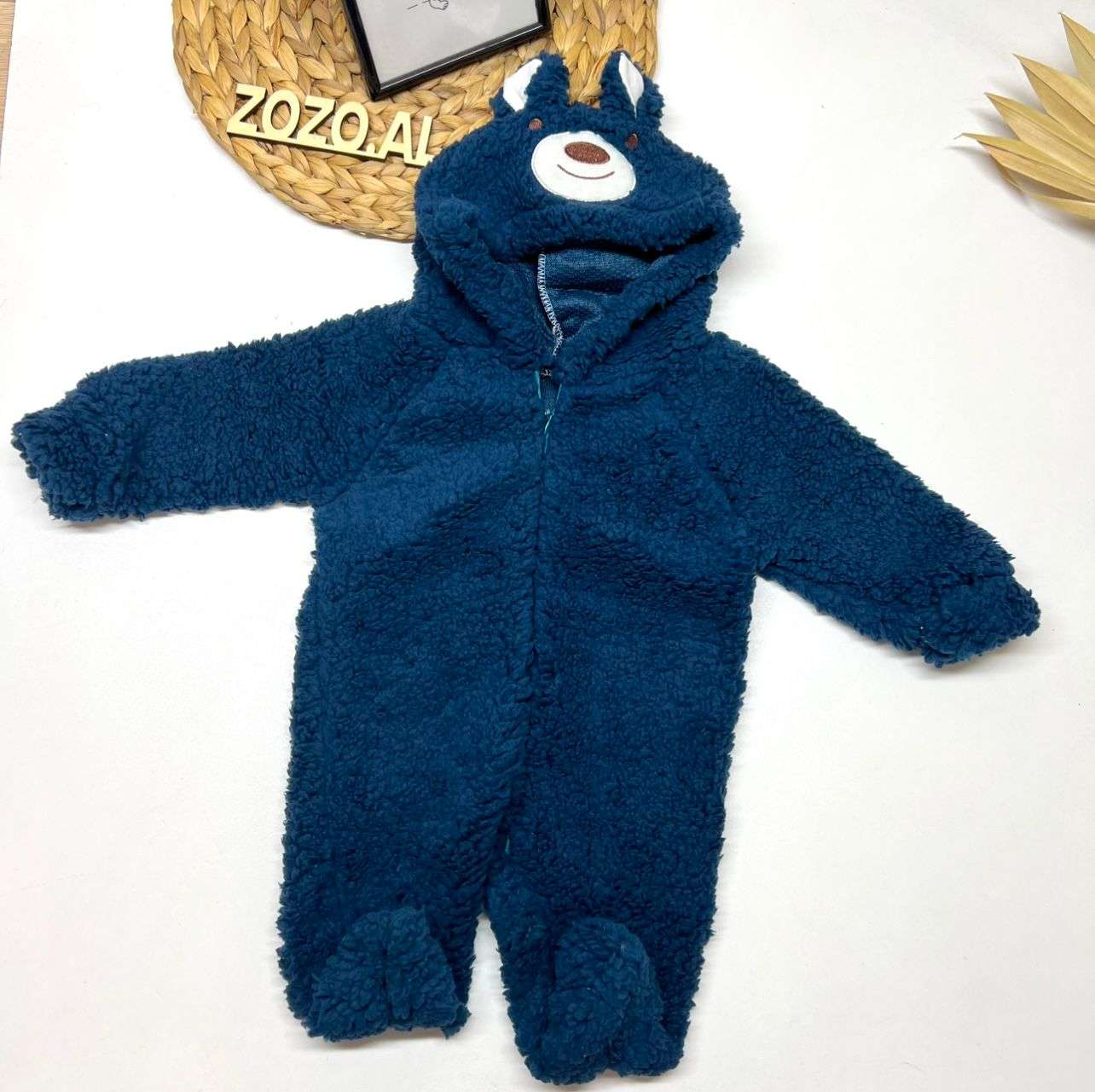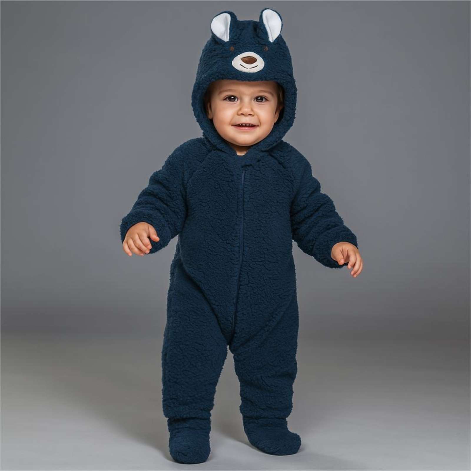 Pellush blu me kapuc me dizajn fytyre kafshe. Pellusha per bebe.