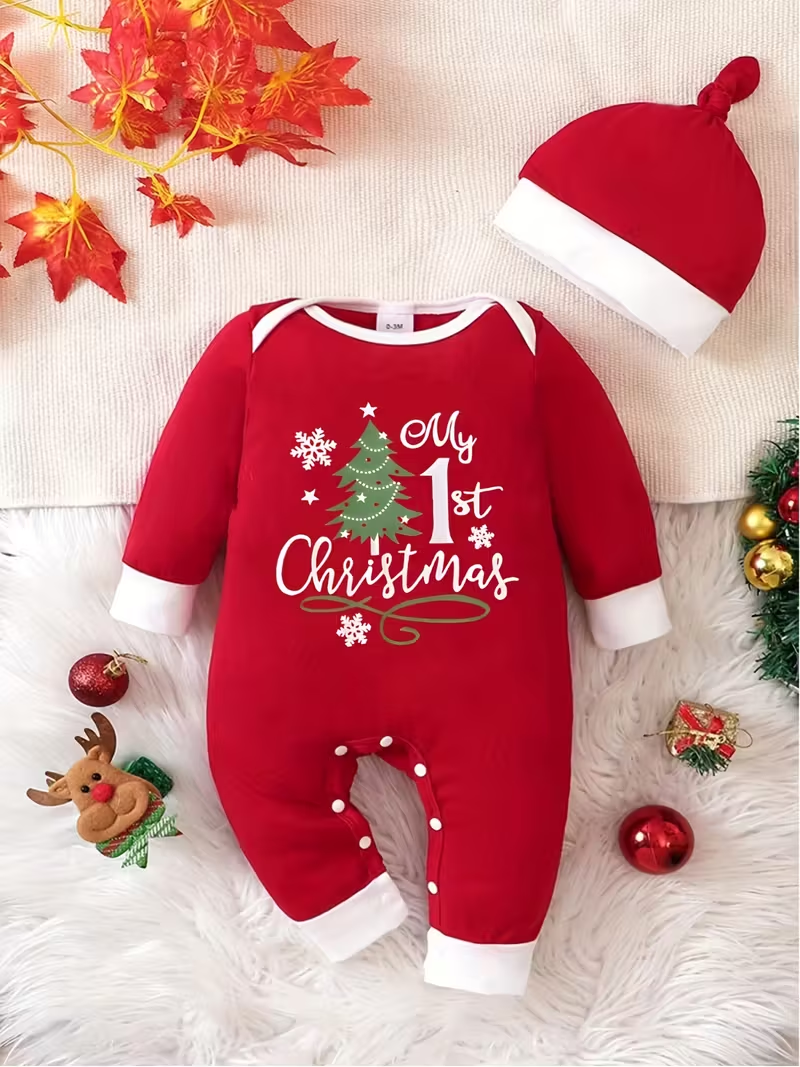 Tutine festive e kuqe My First Christmas me kapuc te kuq